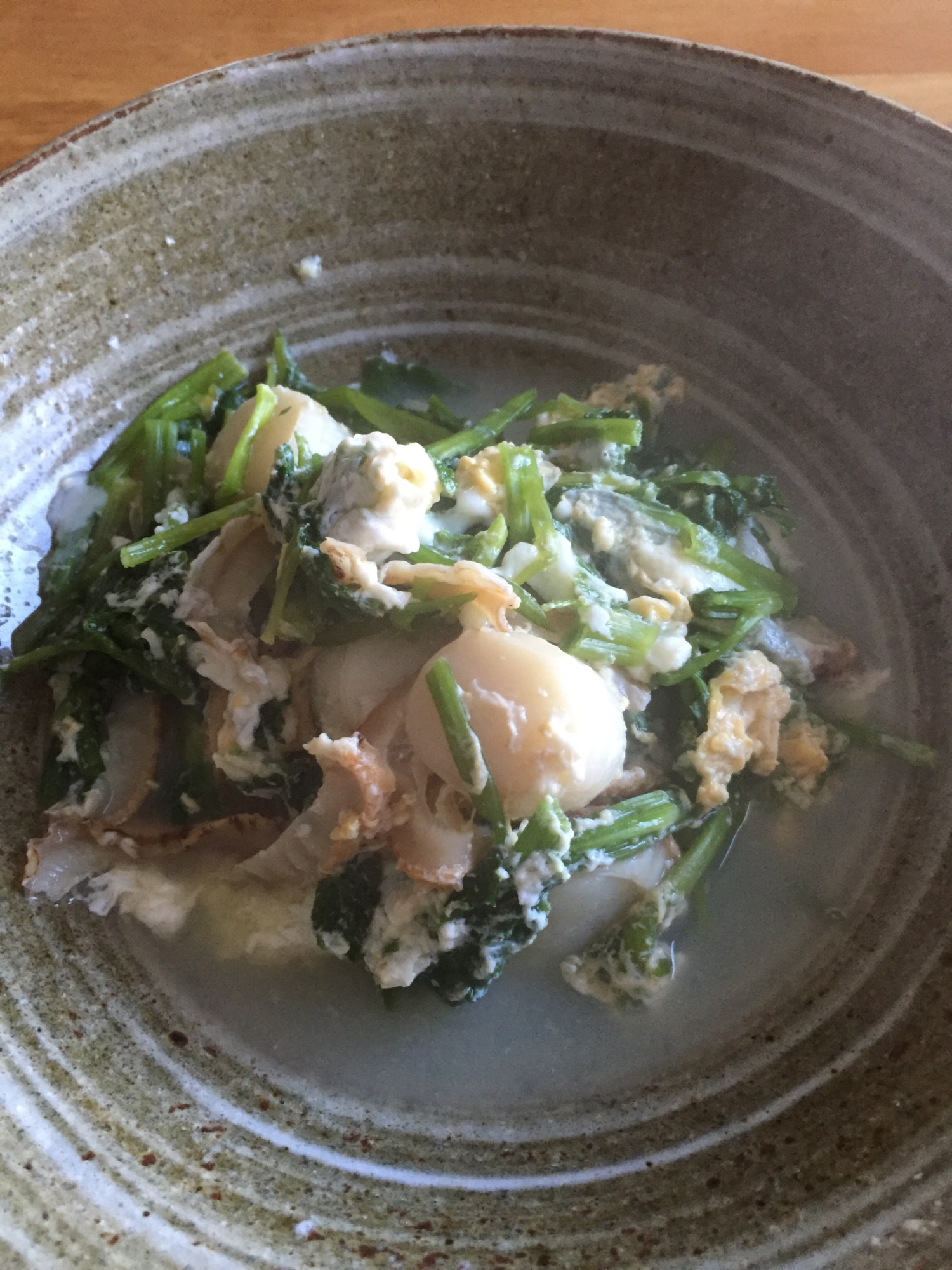 小松菜とホタテのオイスター卵とじ Largoの手づくり生活