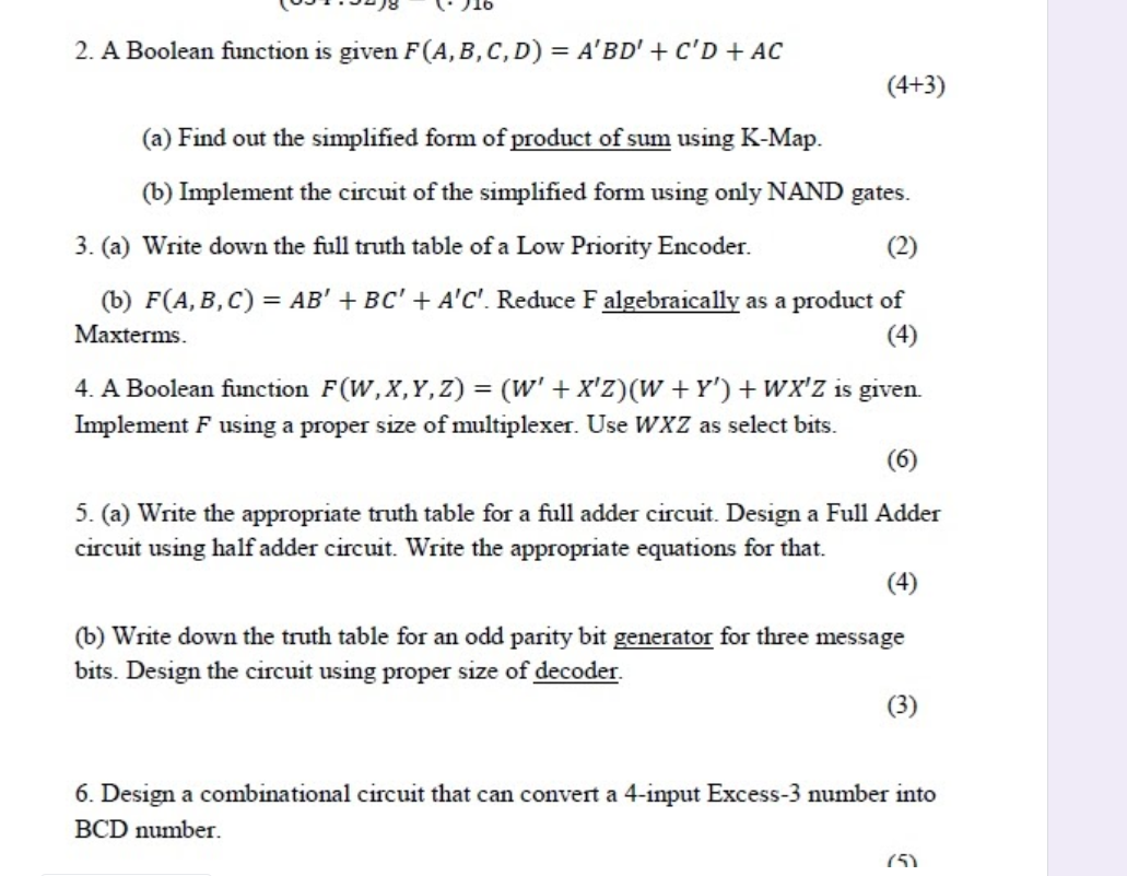 Solved 5 Points Show Work Question Simply Give Answer Enough 1 Simplify Following Boolean Functio Q